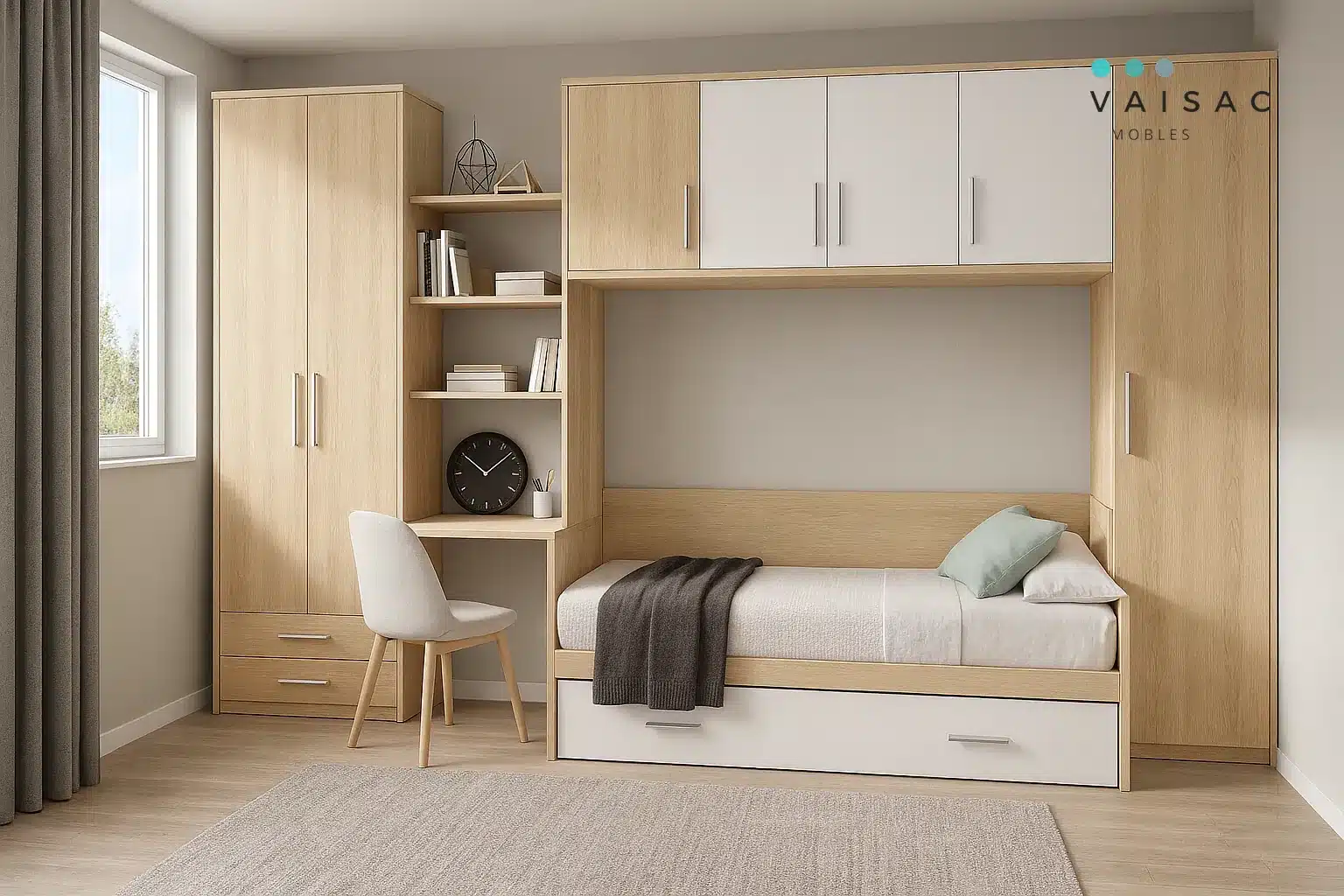 ¿Deseas crear un dormitorio juvenil a medida, moderno y aprovechar al máximo el espacio disponible en la habitación de tus hijos? En Vaisac Mobles, te ofrecemos la solución perfecta. Nuestros dormitorios juveniles personalizados están diseñados para brindar a tus hijos su propio espacio en el hogar.