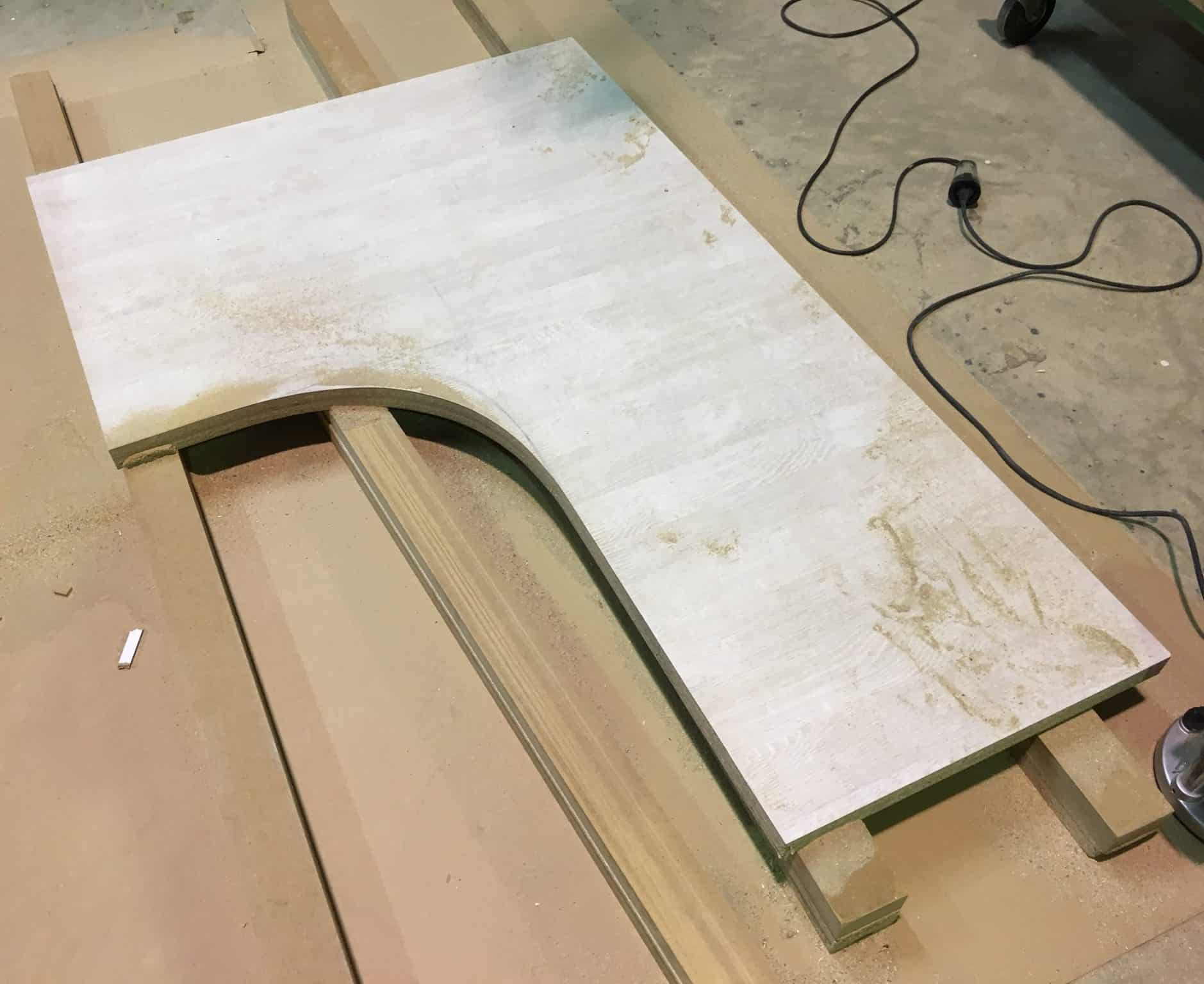 escritorio en L con forma curva