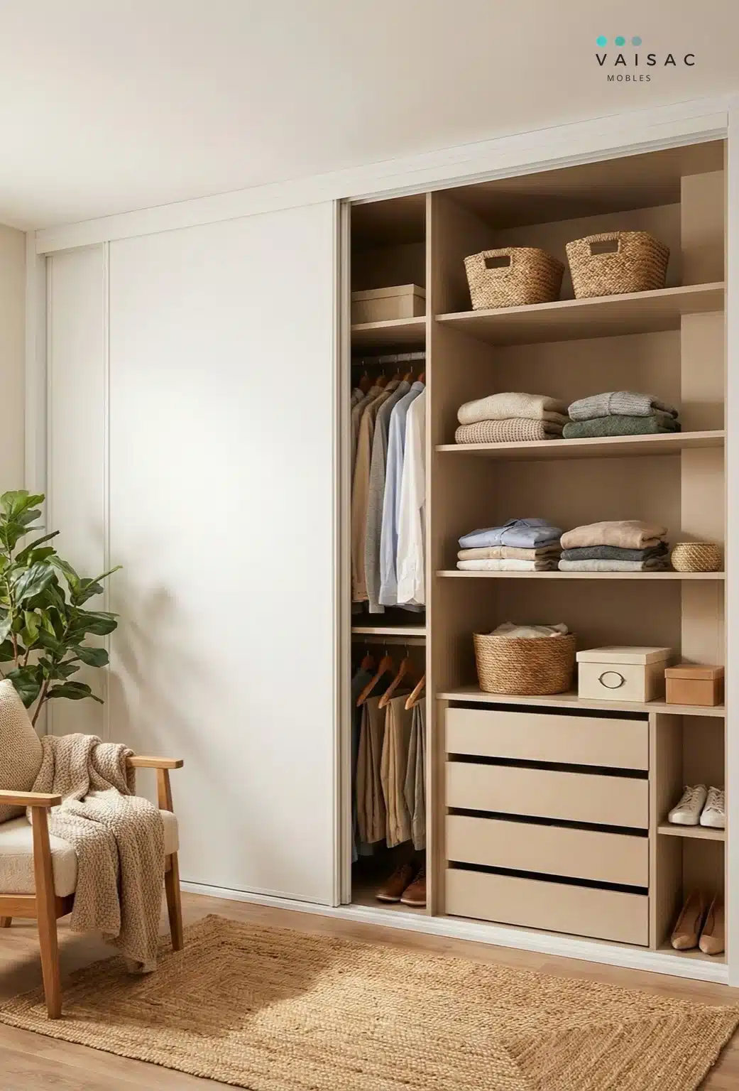 Te haremos un armario a medida práctico, funcional y que se integre en armonía con tu hogar, ya sea de estilo moderno, minimalista, clásico, elegante…