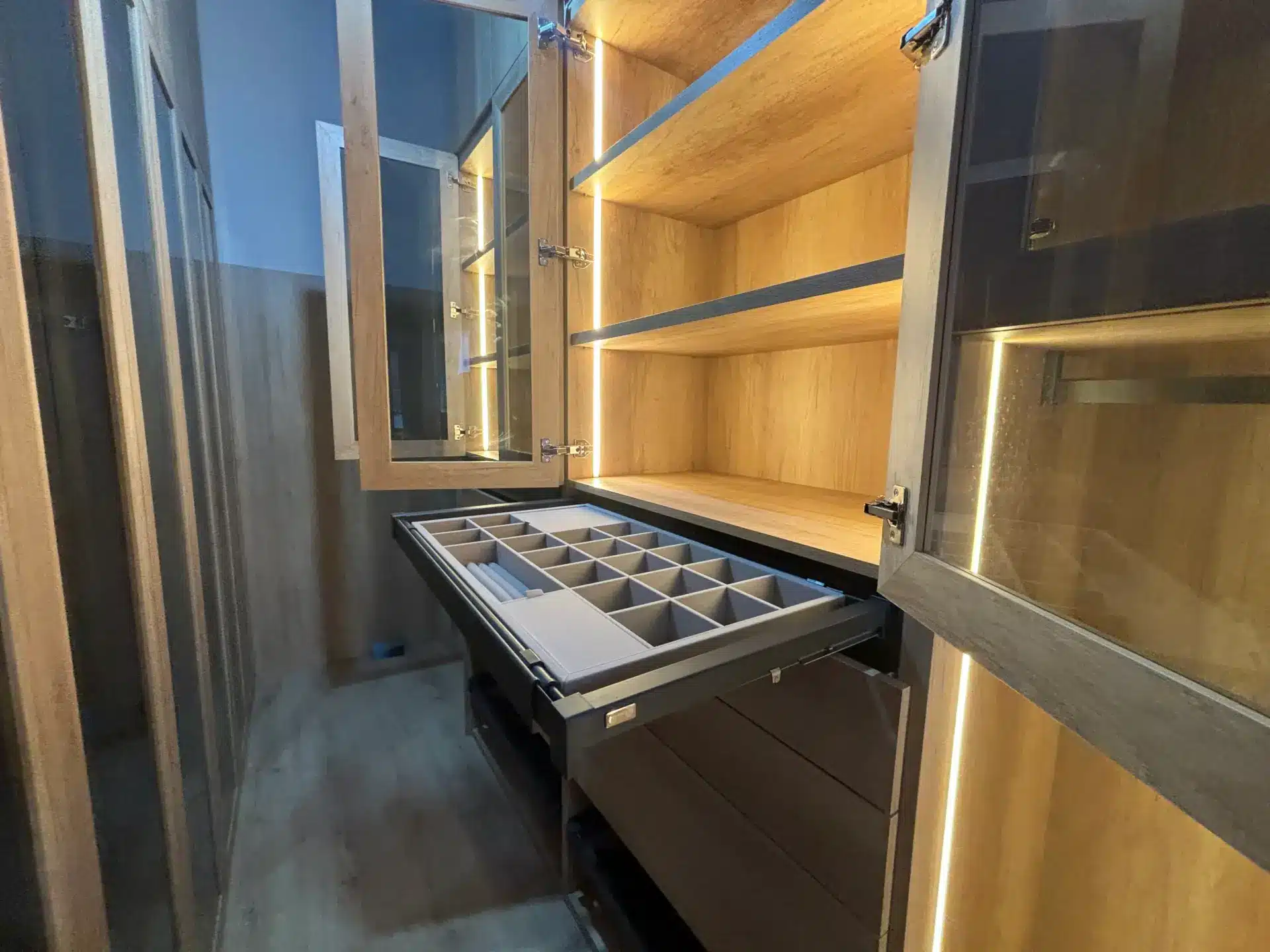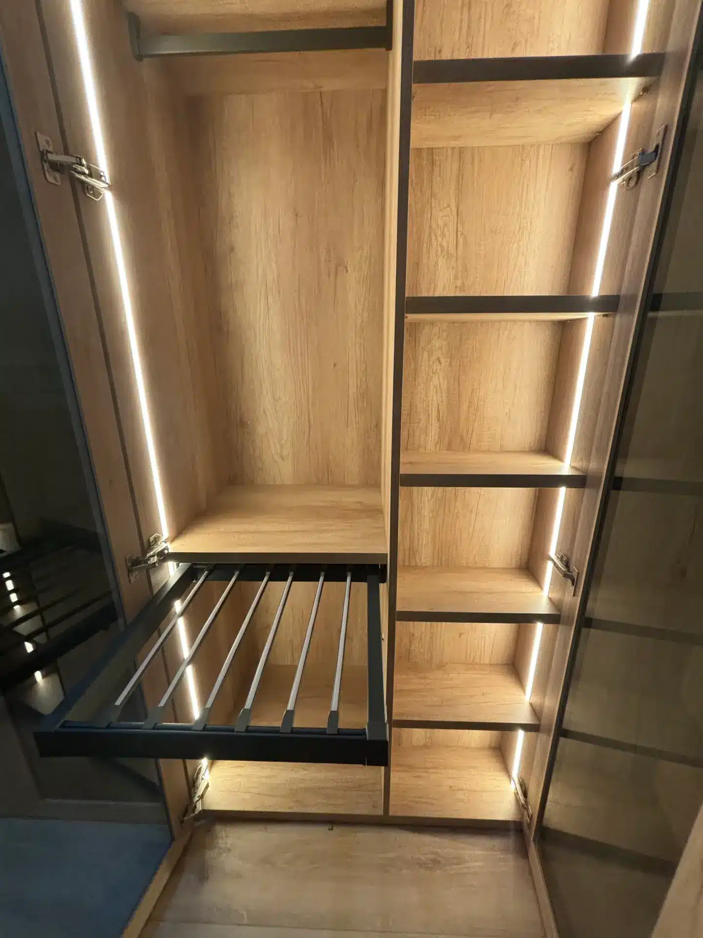 En nuestro servicio de vestidores a medida, tú eres quien decide dónde y cuántos estantes necesitas, así como cajoneras, barras para colgar, cajones especiales para corbatas o pantalones, y otros accesorios como zapateros o barras abatibles para las partes más altas. Nos encargamos de crear un vestidor que se ajuste a tus necesidades y gustos, logrando que sea visualmente atractivo y práctico al mismo tiempo.
